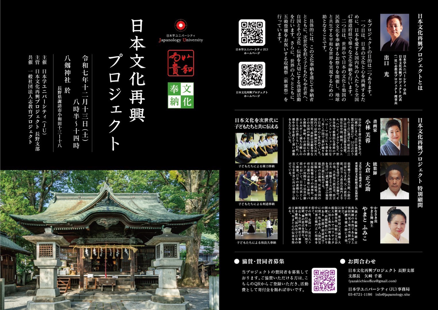 2025年、日本文化再興プロジェクトの一環として、八剱神社にて文化奉納を実施いたしました。