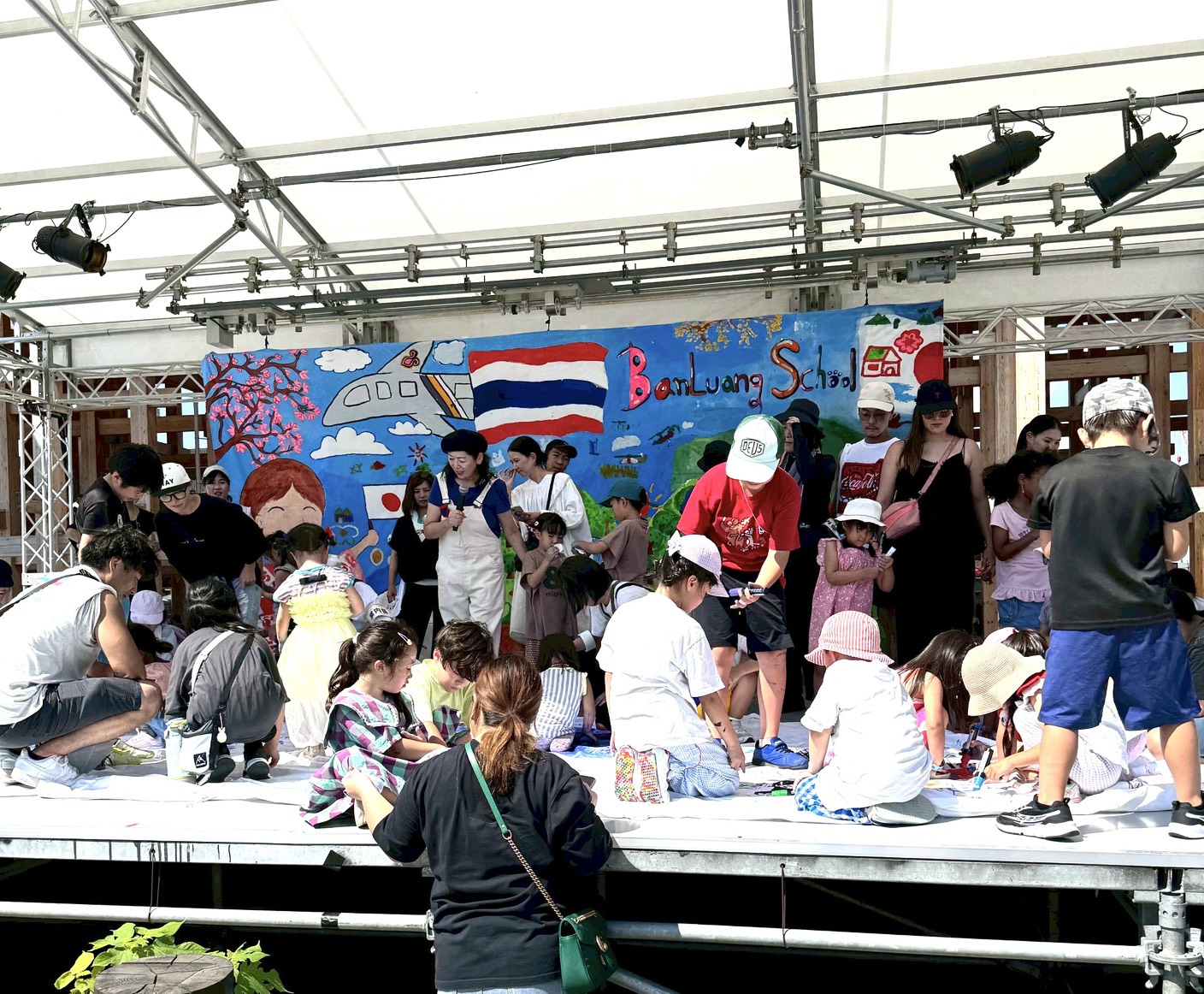 このワークショップでは一枚の大きなキッズゲルニカの一部分をみんなで描きます。